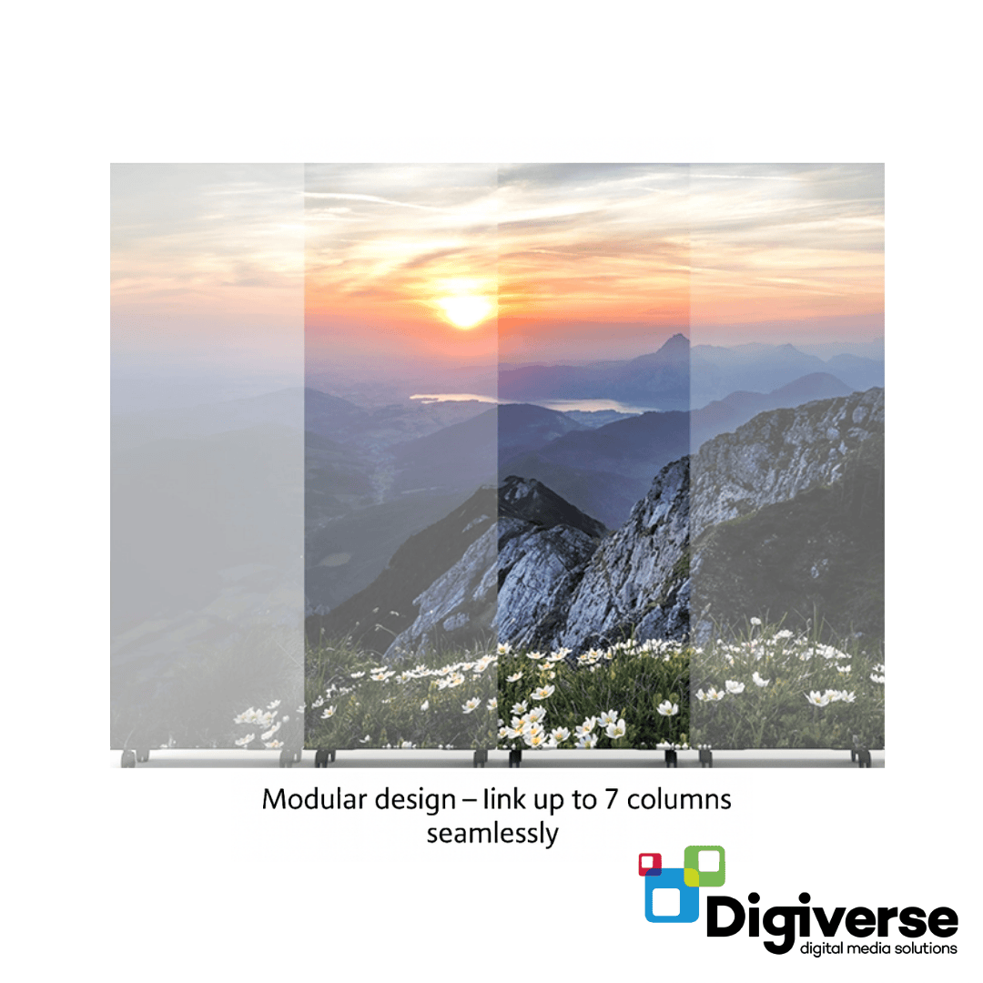 The DV-LED Freestanding Totem (4×1) is built for large-scale, high-visibility indoor digital signage. Its 800 cd/m² brightness ensures clear, vivid images in bright environments, while the expansive 4×1 cabinet layout provides maximum visual space for promotional or informational content.