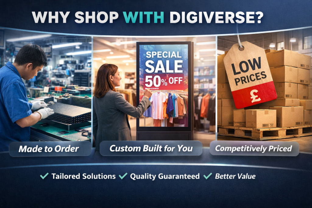 When choosing digital signage or display technology, we know customers want three key things: quality, value, and a solution that fits their needs. At Digiverse, everything we do is built around those principles — even when it comes to how our products are made and delivered.
